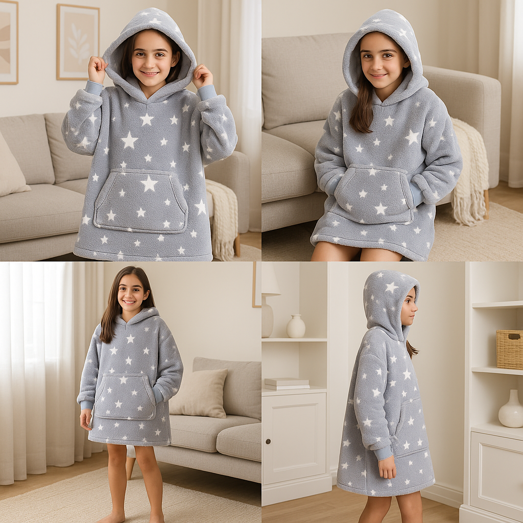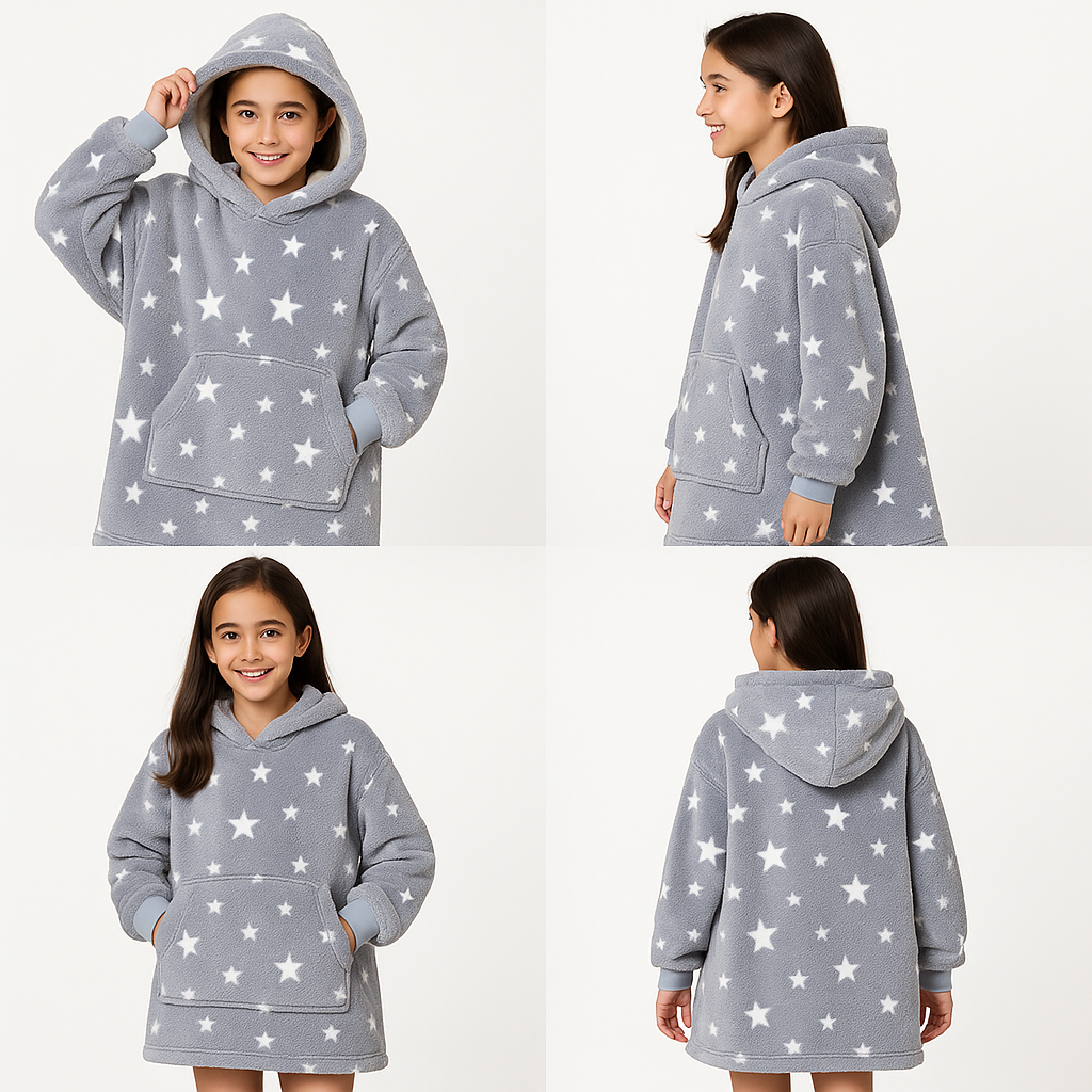 Sumérgete en una experiencia única de abrigo, suavidad y comodidad con el Polerón Polar Cielo Estrellado. Diseñado en Estados Unidos y fabricado con microfelpa tipo sherpa de lujo, este polerón-manta te envuelve como un abrazo cálido, ideal para relajarte en casa sin perder libertad de movimiento.