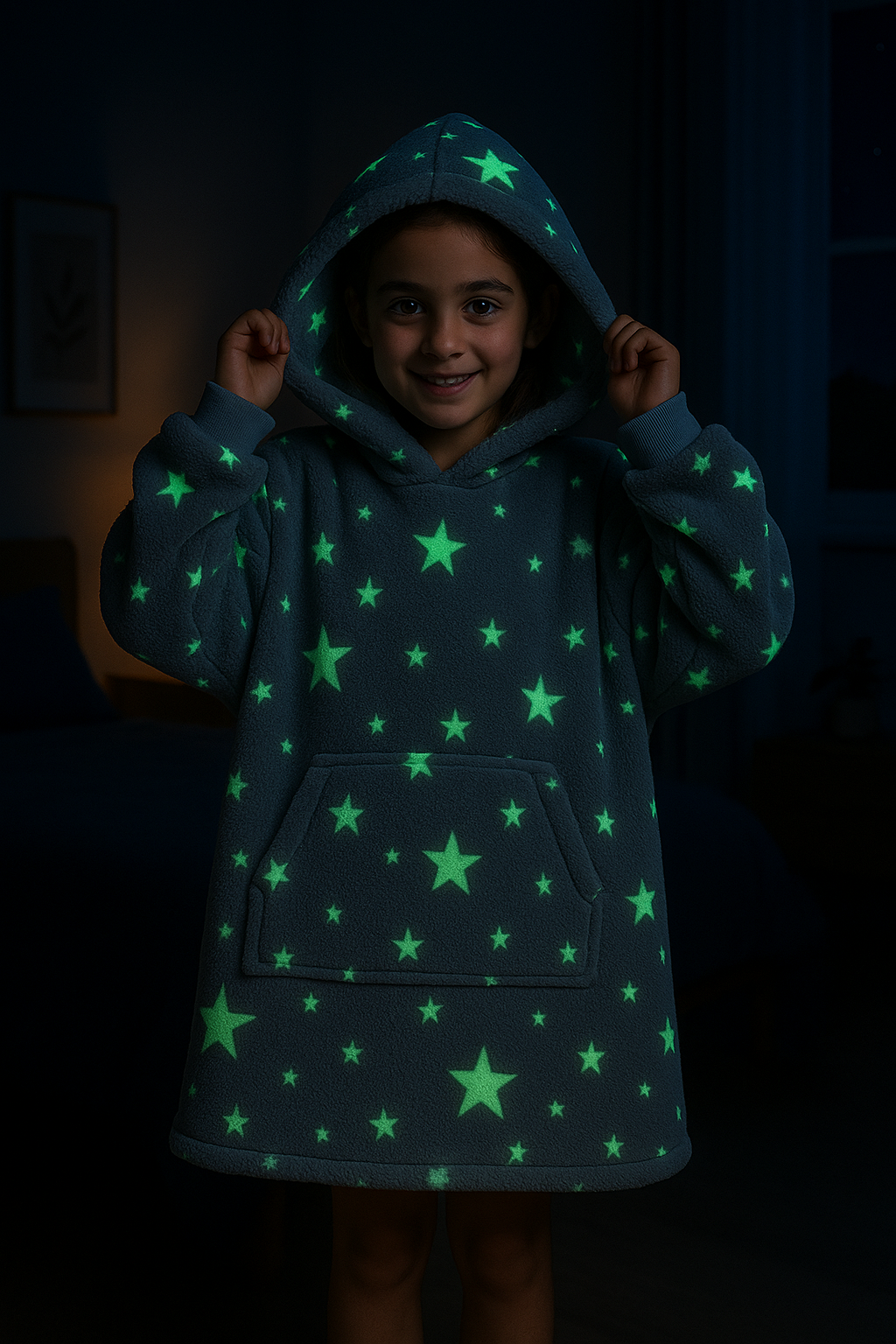 Manta con capucha cielo estrellado brilla en la oscuridad